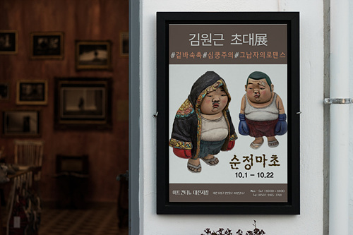 김원근의 조각은 주로 작고 배 나온 아저씨, 촌스러운 옷을 입고 글러브를 낀 권투 선수, 주머니에 손을 꽂고 배외하는 시골 동네 건달의 모습을 나타낸다. 모두 겉보기엔 무뚝뚝하고 무서워 보이지만, 마음 한편에는 한 여자에 대한 순애보적 사랑을 지닌 따뜻한 남자들이다.